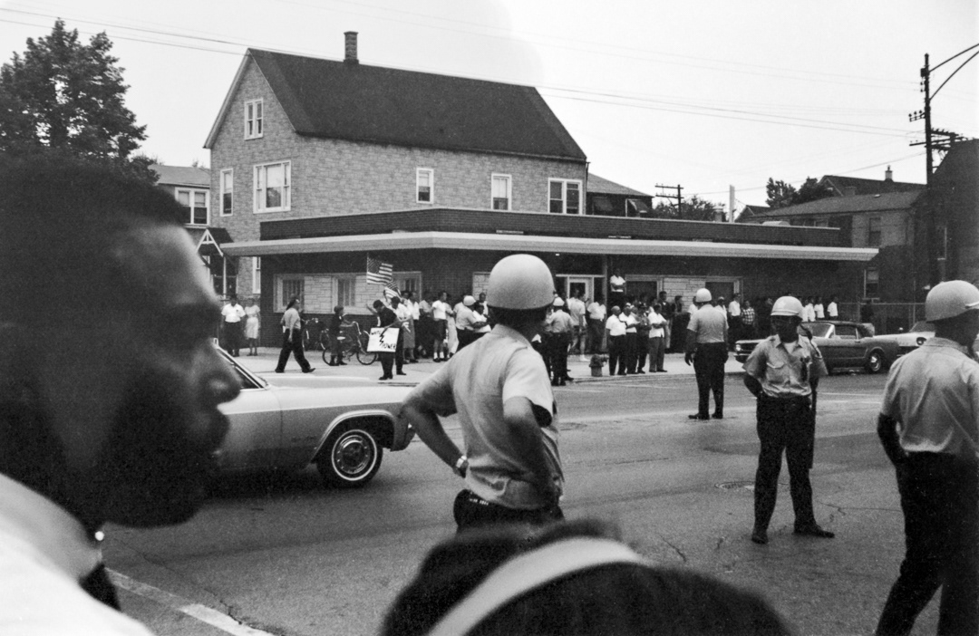 I worked on housing justice issues in a Chicago neighborhood community organization during the 1966 Open Housing Movement that was spearheaded by Martin Luther King, Jr. along with other civil rights leaders and organizations including the Southern Christian Leadership Conference. I worked on the same issues in another Chicago community organization in 1968. See the Cleveland Ave. 1968 gallery above. There was a system maintained by entities that included government and realtors that kept blacks from moving into white neighborhoods. This was accomplished with tactics that included redlining and block busting. The racial housing dividing lines were stark with a single street or avenue marking them. This system, which also included the failure to enforce the housing code, limited the housing market available to blacks, which then caused their housing to be both of lower quality and more costly than was housing for whites. Likewise, the price to blacks for houses in white blocks that the realtors were busting was high because of the high demand for and limited supply of housing for blacks. The demonstrations in favor of open housing, one of which is pictured here, revealed the hidden racism of northern whites that was sometimes violent and always hostile and hateful. For further reading, see: https://www.npr.org/2016/08/29/491848087/50-years-ago-martin-luther-king-jr-fought-for-open-housing-in-chicago