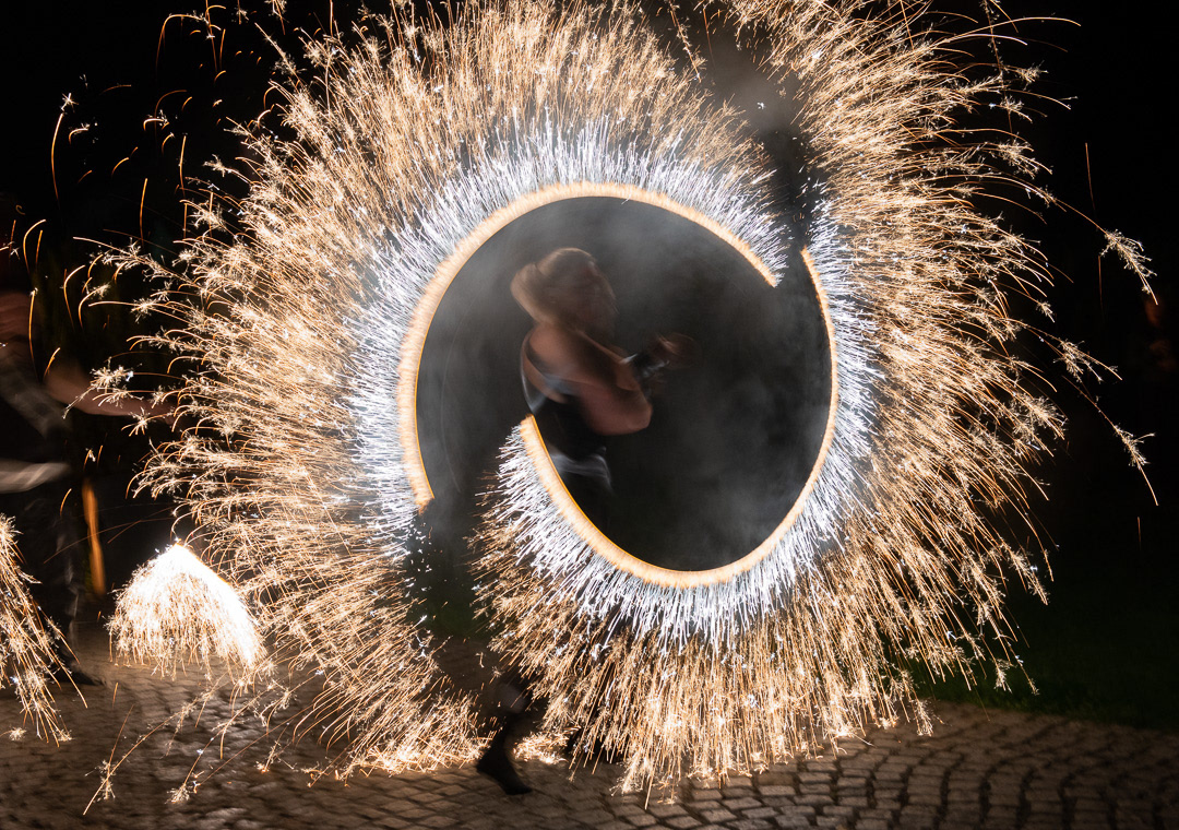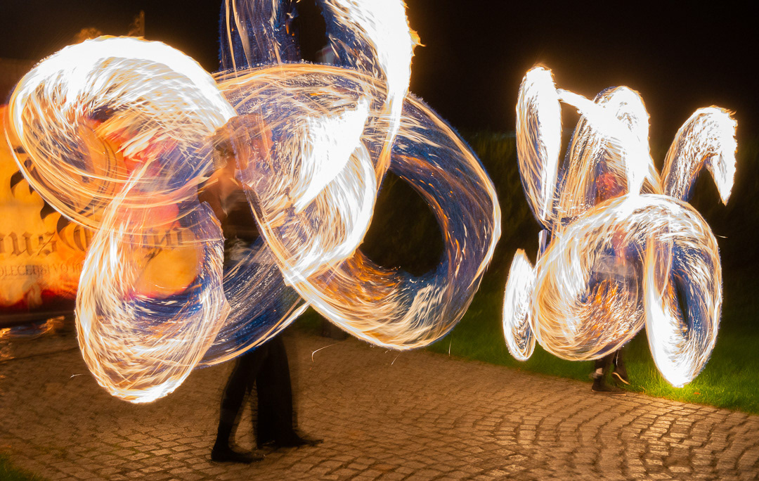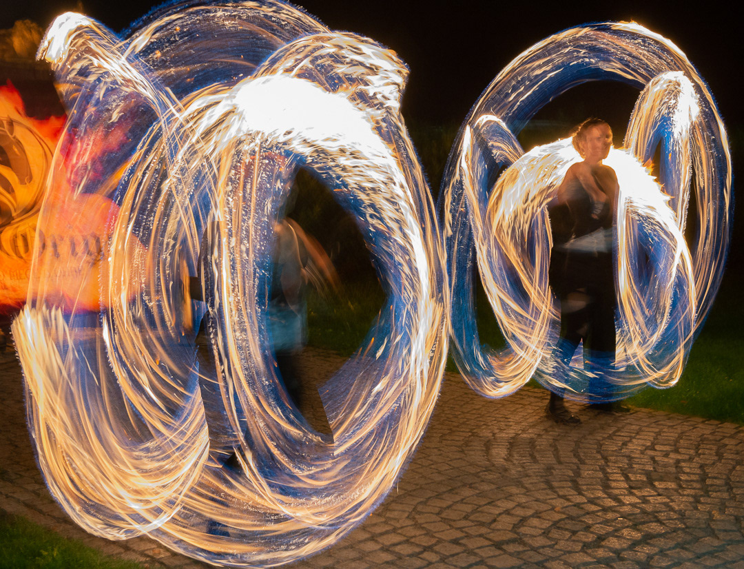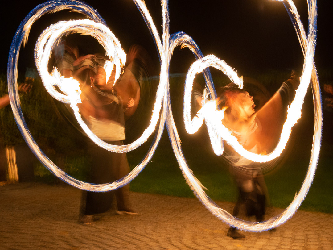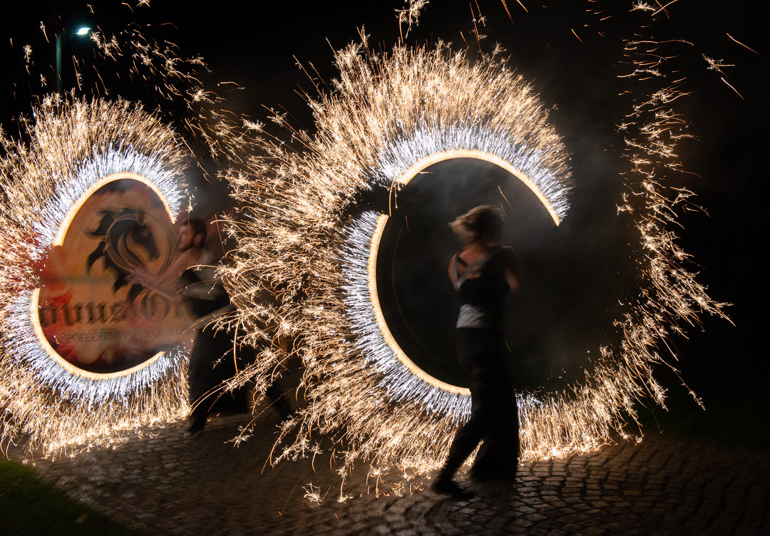 These talented fire dancers performed at a wedding that took place in Zamek Usobi, a castle located in Úsobí, a village in Czech Republic.