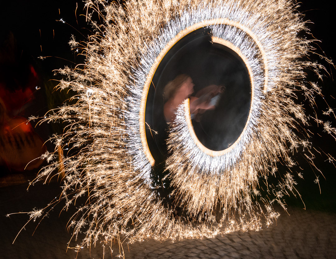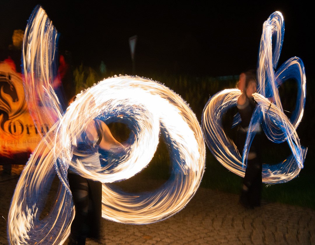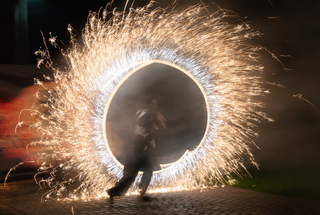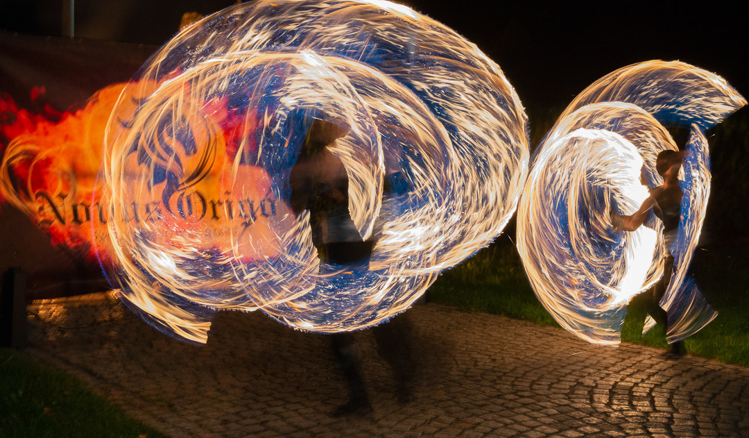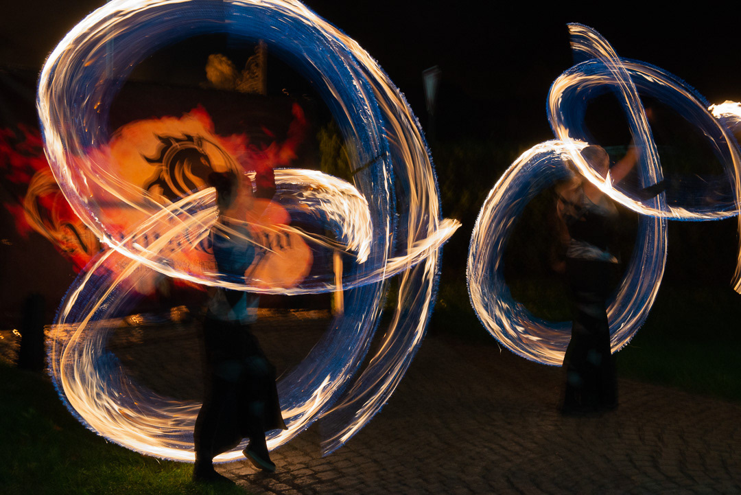 These talented fire dancers performed at a wedding that took place in Zamek Usobi, a castle located in Úsobí, a village in Czech Republic.