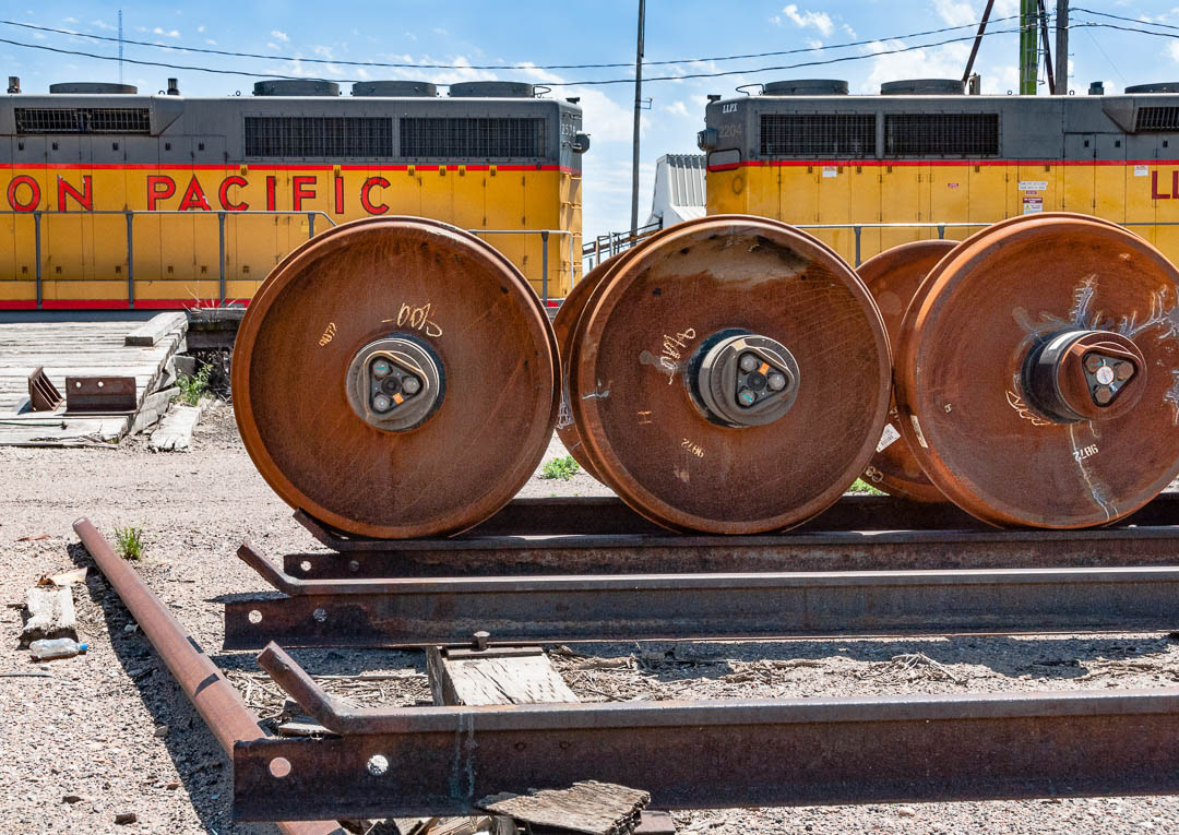 I will be referencing the following photographs from left to right. Blackwell Engine #1096 The first photograph is of Engine No. 1096, with a prairie wheel layout of 2-6-2 (two front pilot wheels, six driving wheels, and two rear wheels), which was built in 1902 by Baldwin Locomotive Works. Its more than 50 year service life ended, after an estimated more than 1,259,000 miles to its credit, with its last run in 1953 to Wellington, Kansas. This engine is on public display in Blackwell, Oklahoma, where a young girl told me while I was photographing it that she really liked this engine because there were so many places to hide. Santa Fe Locomotive Engine No. 2542 The second photograph shows Santa Fe Locomotive Engine No. 2542, which was built by the American Locomotive Company in Pittsburgh, Pennsylvania in 1910 for the KCM&O railroad. It was purchased by the AT&SF in 1929 and placed in Newton, Kansas. It is a 2-8-0 engine: two front wheels, eight drive wheels, and no rear wheels. Upon its retirement in 1955, it was moved to Wilson Park in Arkansas City, Kansas and dedicated as part of the twenty-fourth annual town celebration. It deteriorated considerably over the next 65 years and was extensively restored and rededicated in 2017. When I took this photograph in 2023, children were gleefully playing on it just as my children did 40 years ago. Big Boy No. 4014 The next three photographs are of Big Boy No. 4014, which is the only remaining operational Big Boy of the original 25 built by the American Locomotive Company exclusively for the Union Pacific Railroad beginning in 1941. The company describes it as: “132 feet long and weighed 1.2 million pounds. Because of their great length, the frames of the Big Boys were ‘hinged,’ or articulated, to allow them to negotiate curves. They had a 4-8-8-4 wheel arrangement, which meant they had four wheels on the leading set of ‘pilot’ wheels which guided the engine, eight drivers, another set of eight drivers, and four wheels following which supported the rear of the locomotive. The massive engines normally operated between Ogden, Utah, and Cheyenne, Wyo.” This engine “was retired in December 1961, having traveled 1,031,205 miles in its 20 years in service.” After completion of its restoration, it “returned to service in May 2019 to celebrate the 150th Anniversary of the Transcontinental Railroad's Completion.” Since then it has been in excursion service. I took these photographs of it on November 16, 2019, as it arrived in Coffeyville, Kansas, while on an extensive tour. Diesel Engines I remember enjoying riding on steam powered trains between locations that are only served by buses now. Time and technology have marched on. Diesel engines proved more cost efficient. And so we entered a new age, but the romance of the steam powered locomotive lives on. The next four photographs after Big Boy were taken at the Oklahoma City Railway Museum, which has a treasure trove of trains, both steam and diesel, and related artifacts. They are followed by Union Pacific engines waiting for a wheel change and then a row of wheels on axles awaiting trains in Oakley, Kansas. Next is a BNSF train approaching the Harper, Kansas train station, which now serves as a BNSF maintenance building. The next photograph shows railroad cars lined up at a grain elevator in Blackwell, Oklahoma. The last three photographs are taken in Ponca City, Oklahoma.