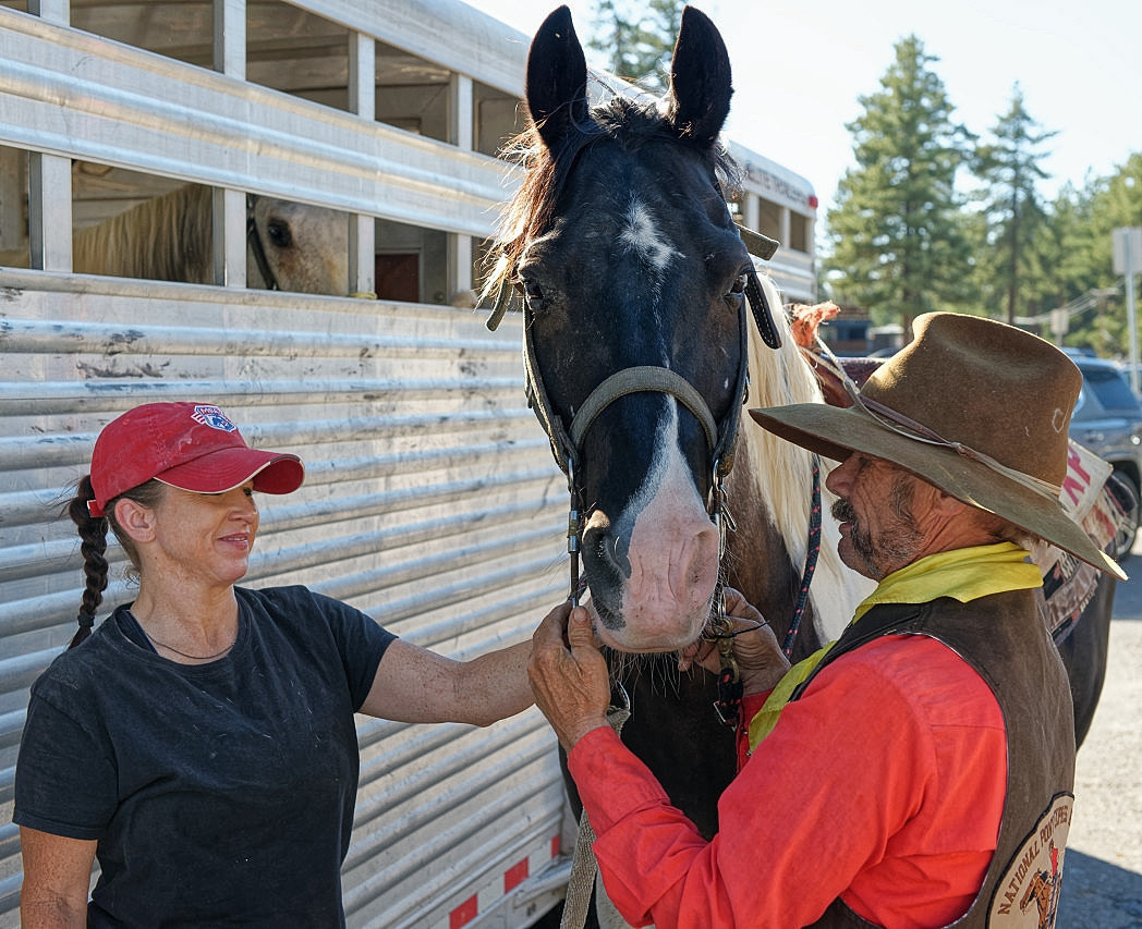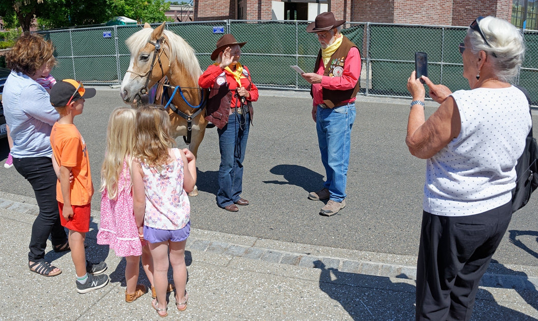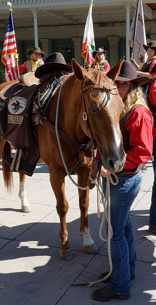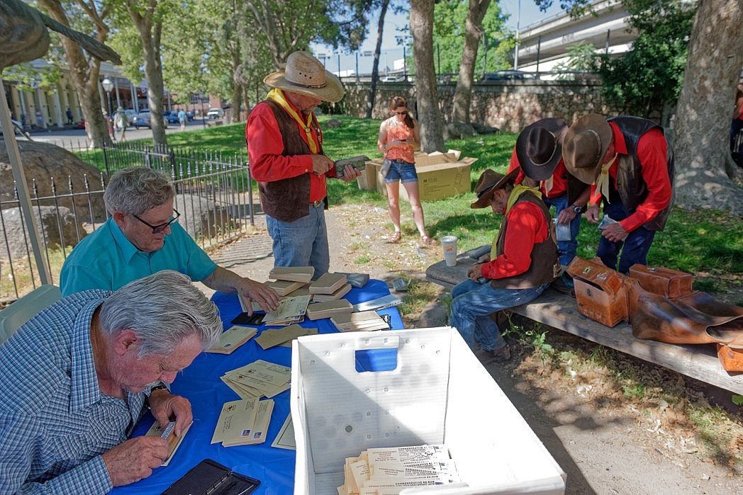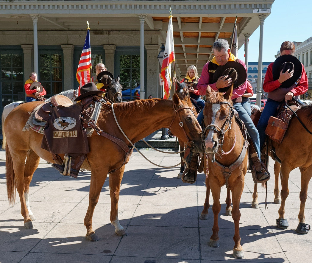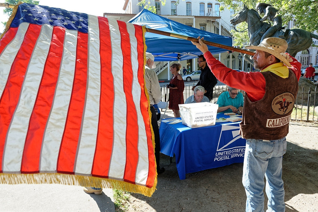There was a layover in Folsom, California for a teaching moment at a Pony Express historical landmark. The final destination at Old Sacramento State Historic Park received a second riderless horse ceremony before proceeding to the business of unlocking the mail. Each letter was carefully hand cancelled by United States Postal Service employees. Members of the public can obtain such a souvenir by sending a letter via the Re-Ride.
