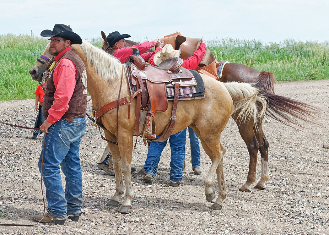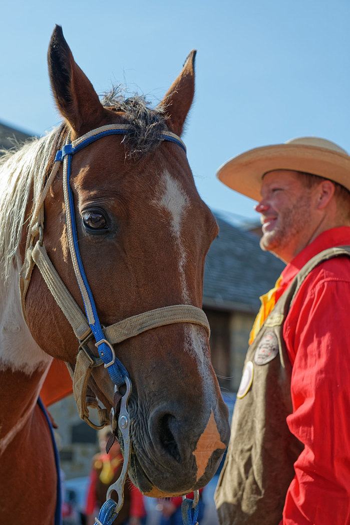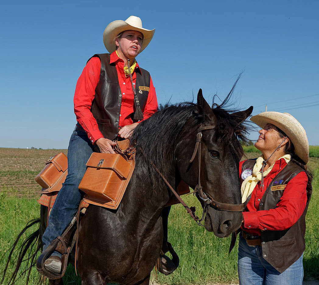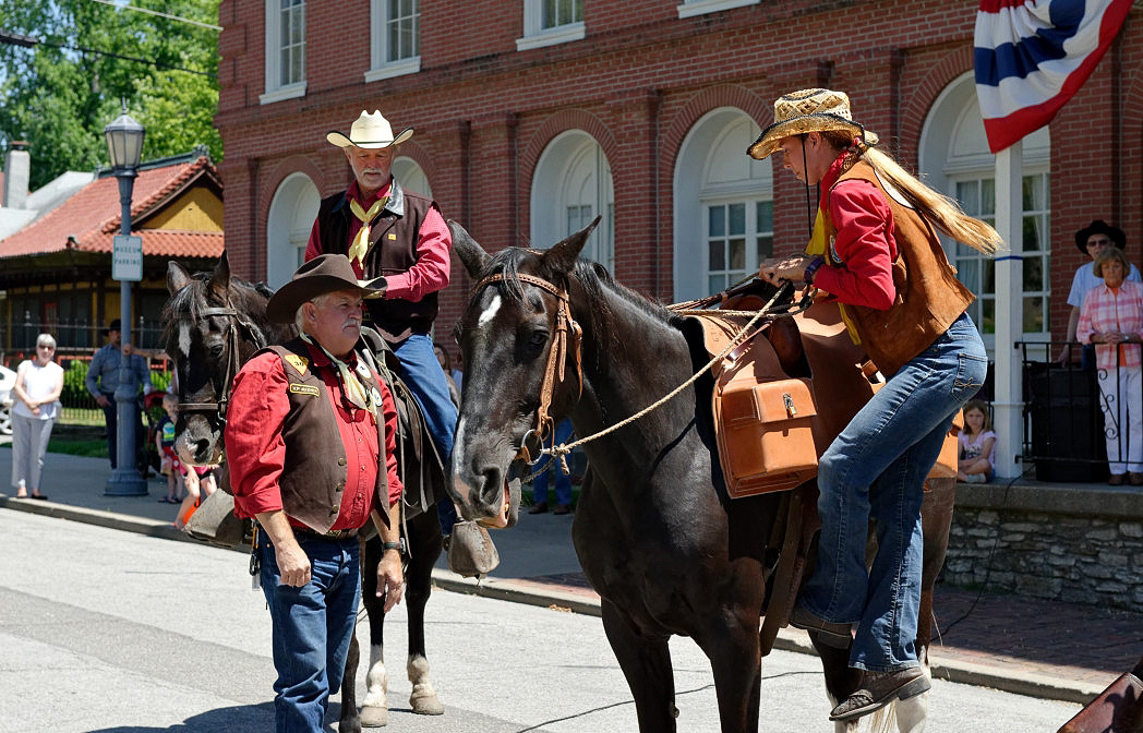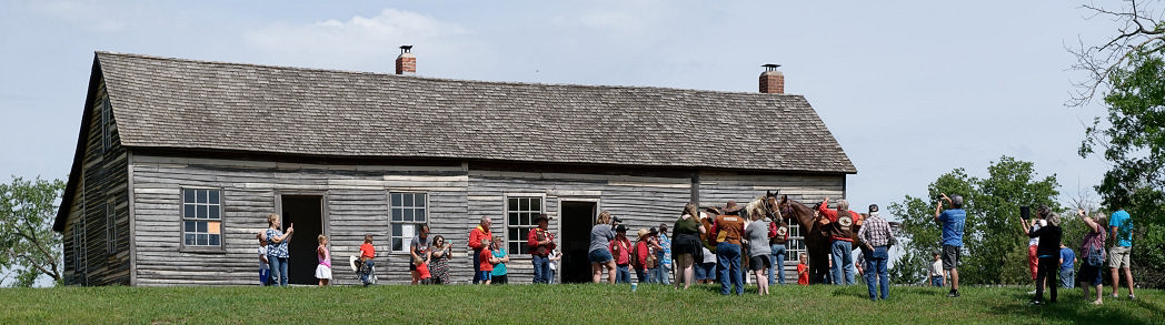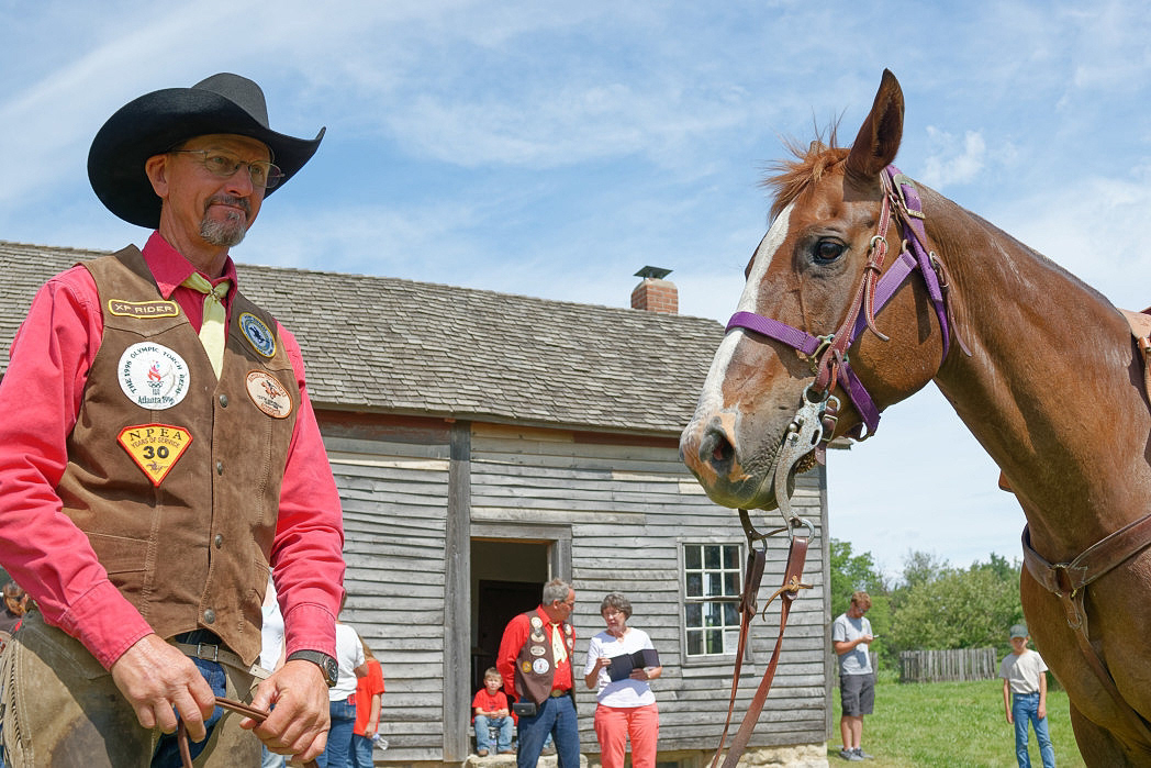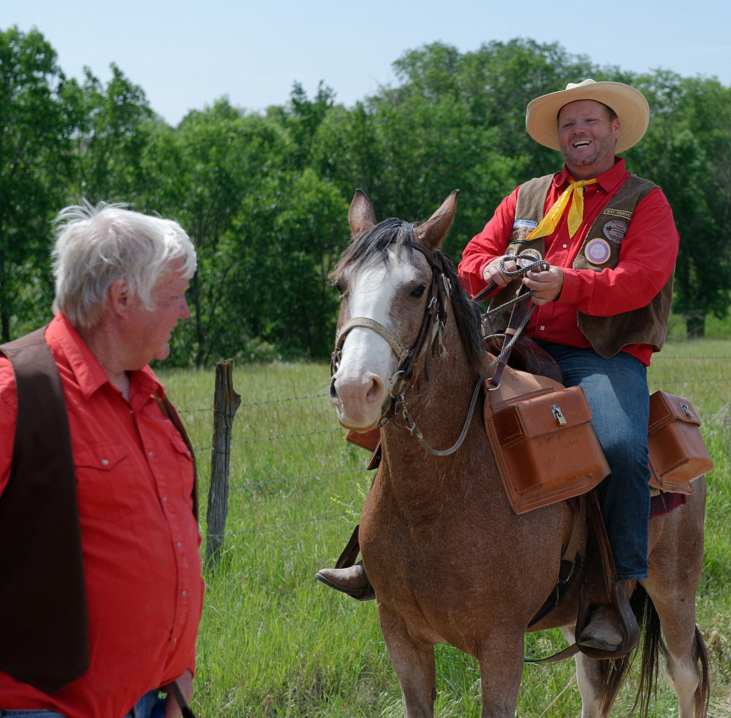 The Pony Express delivered mail between St. Joseph, Missouri and Sacramento, California for only 18 months from April 3, 1860, to October 24, 1861 when it was replaced by the telegraph. But it quickly spawned lore and legend and inspired generations even until today. The relay system of horses and riders made the 1966 mile journey in ten days carrying the mochila, a four pouch leather mail bag that fit over the saddle, through Missouri, Kansas, Nebraska, Colorado, Wyoming, Utah, Nevada, and California. The National Pony Express Association (NPEA) has helped keep the memory of the Pony Express alive by organizing a yearly "Re-Ride" that follows as closely as possible the original route. The Re-Ride is also a 10 day, 24 hours a day relay. You will see riding and transferring of the mochila as well as spectators and spectacular landscapes. The groups with riders often included multi-generation families, friends, and children waiting to become old enough to take their turn carrying the mochila. In 2019 the Re-Ride began in St. Joseph first with the swearing in of the riders with the original oath: "I, ... , do hereby swear, before the Great and Living God, that during my engagement, and while I am an employee of Russell, Majors, and Waddell, I will, under no circumstances, use profane language, that I will drink no intoxicating liquors, that I will not quarrel or fight with any other employee of the firm, and that in every respect I will conduct myself honestly, be faithful to my duties, and so direct all my acts as to win the confidence of my employers, so help me God." In the summer of 2019, my wife and I followed the Re-Ride from St. Joseph to Sacramento. A story I wrote for the NPEA may be found at: https://nationalponyexpress.org/annual-re-ride/reports-from-the-trail/. The Re-Ride dashed from the historic Pony Express Office at the Patee House in St. Joseph and quickly crossed the Missouri River into Kansas, where exchanges were made at other historic locations. Additional galleries are organized by state, which include all the states of the trail but Colorado, which was ridden in the dark. For more information, see: https://nationalponyexpress.org/annual-re-ride/ https://en.wikipedia.org/wiki/Pony_Express https://www.nps.gov/poex/planyourvisit/maps.htm