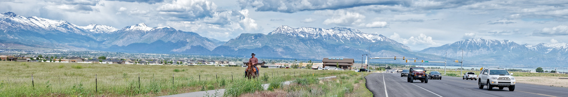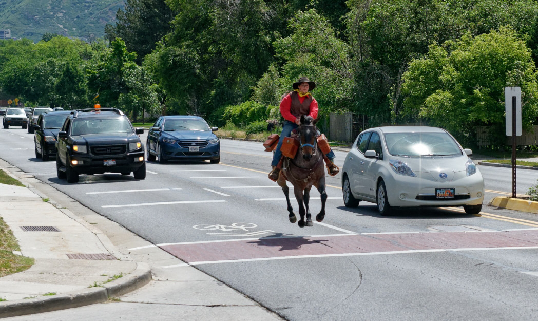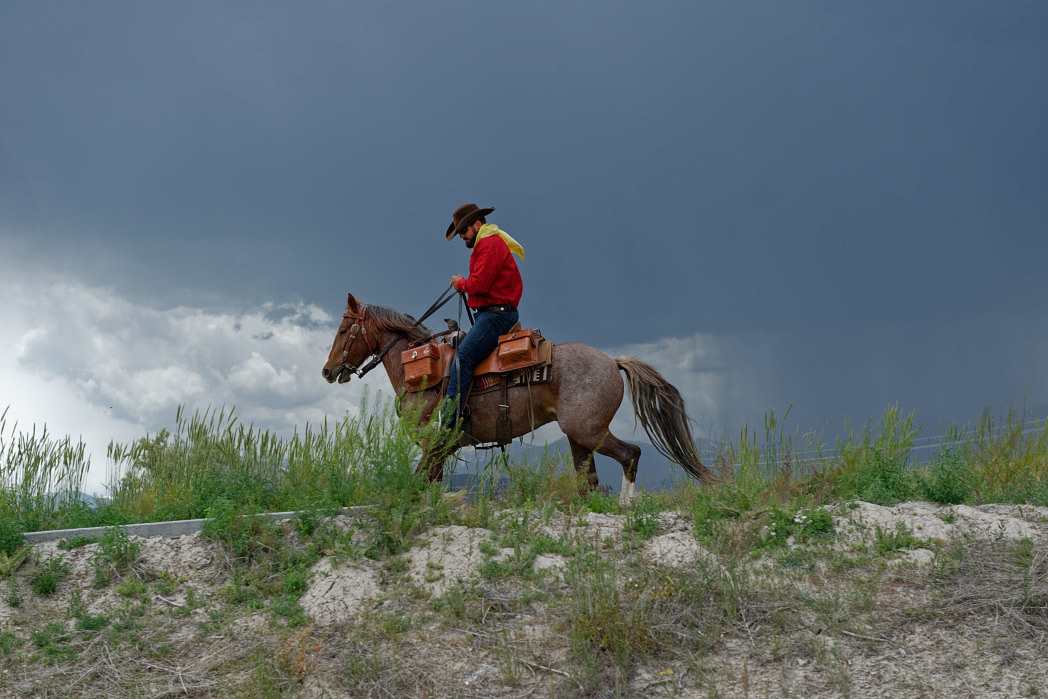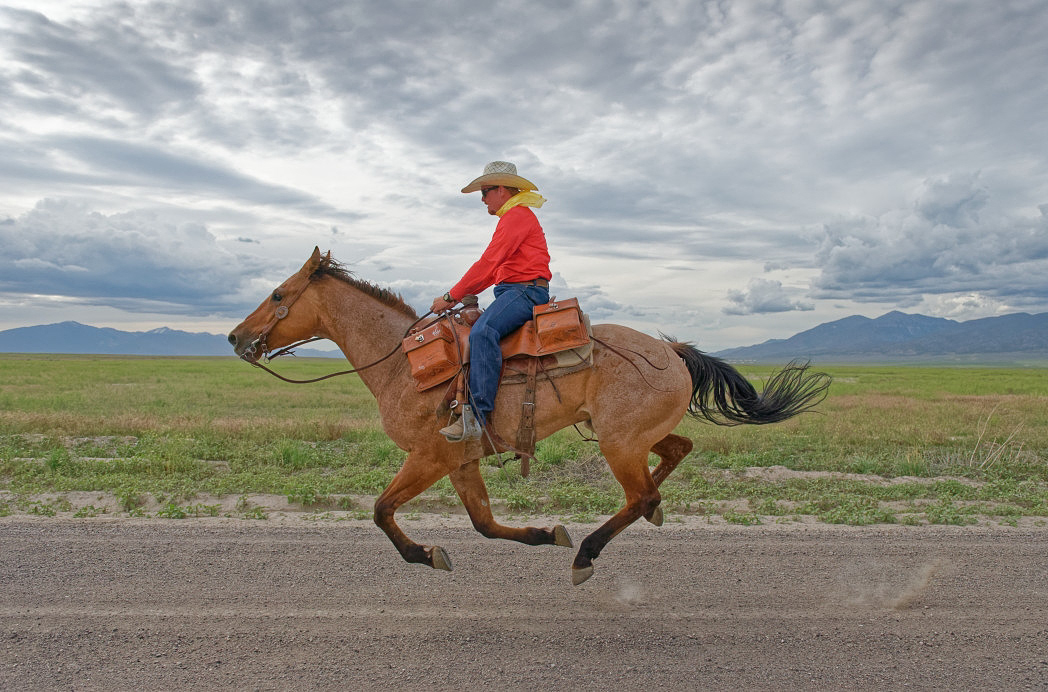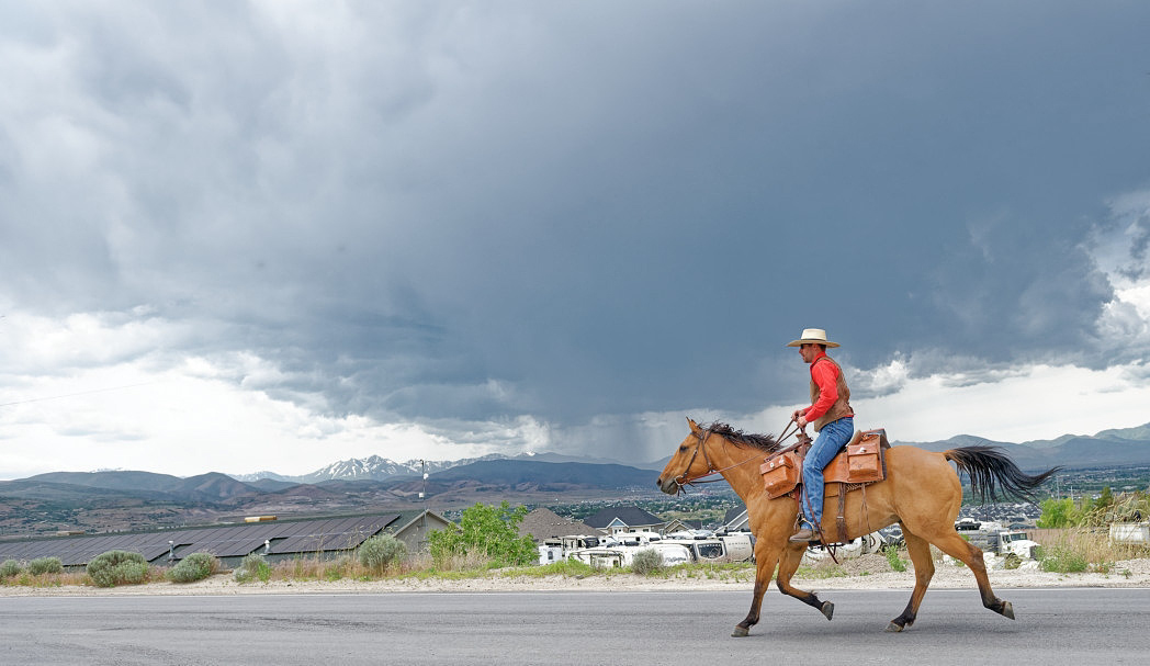 Utah brought both sun and storms and more mountains. You will also see city and country as well as the common sight of local horses wishing they could follow along.