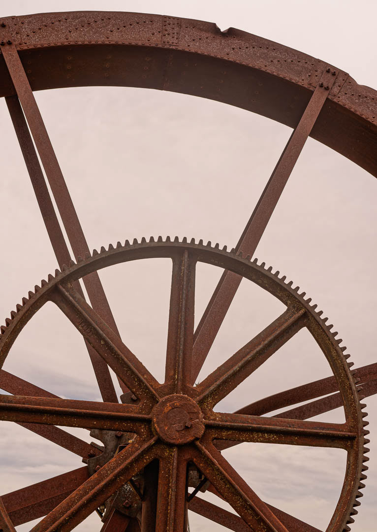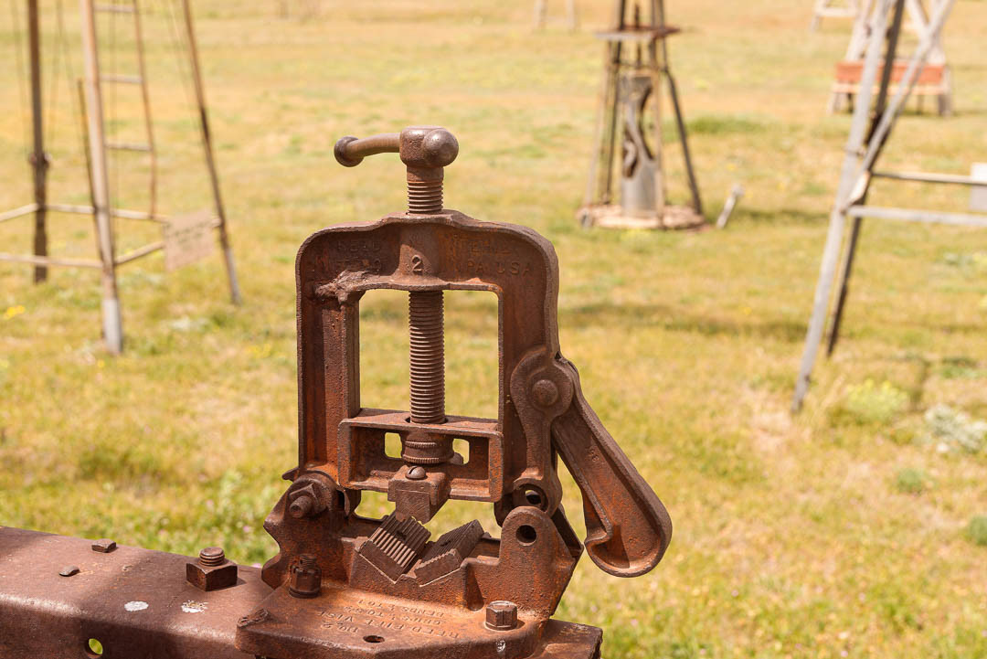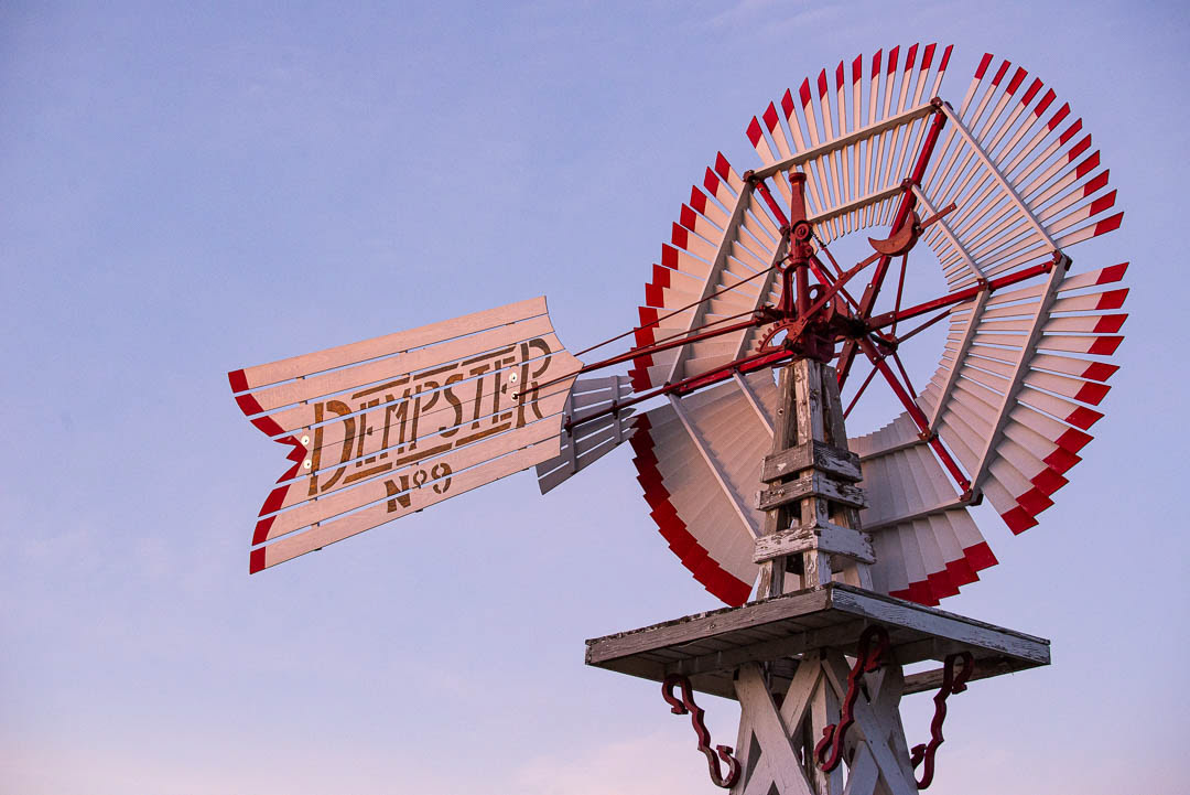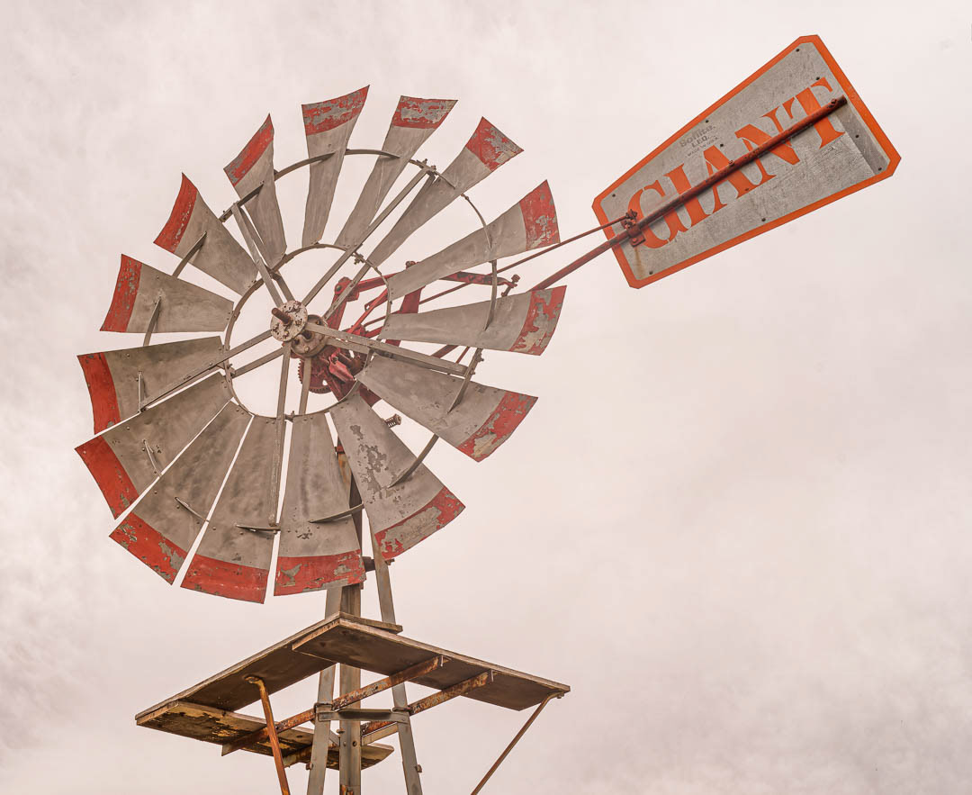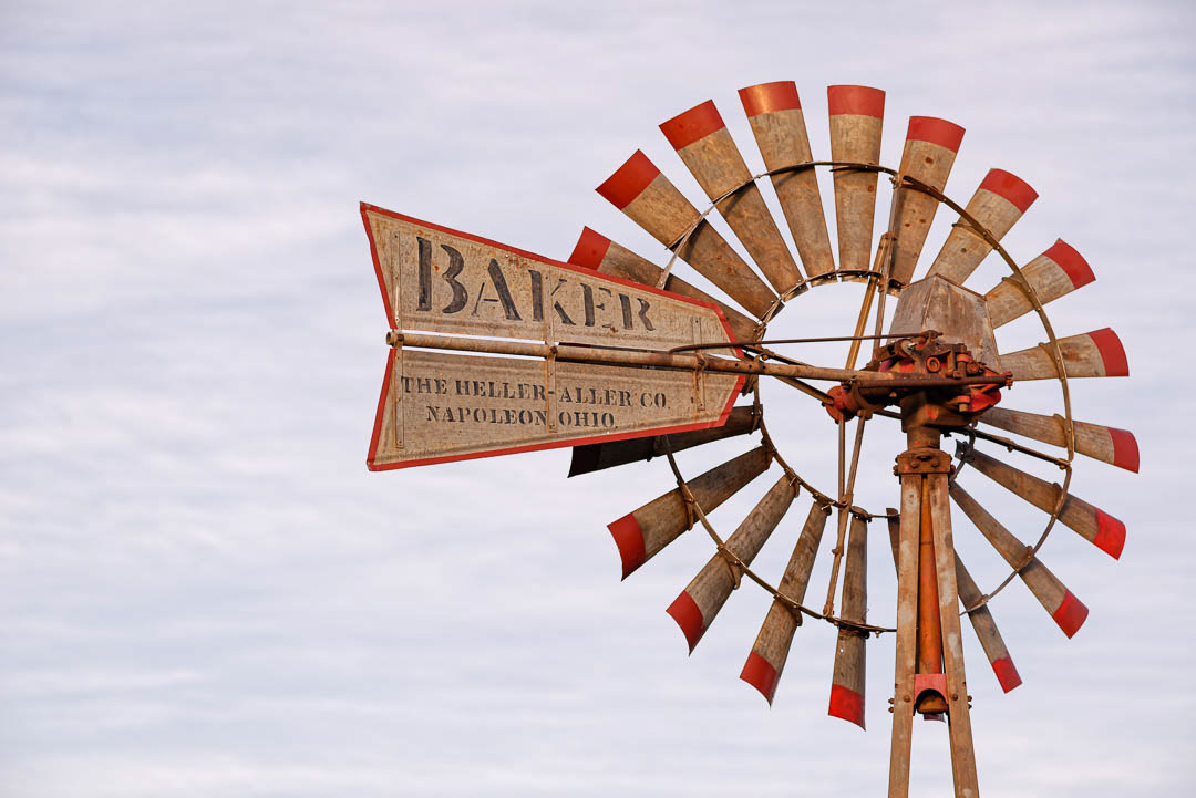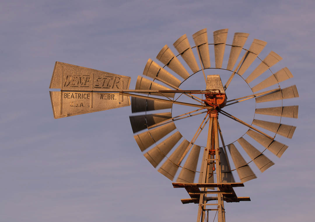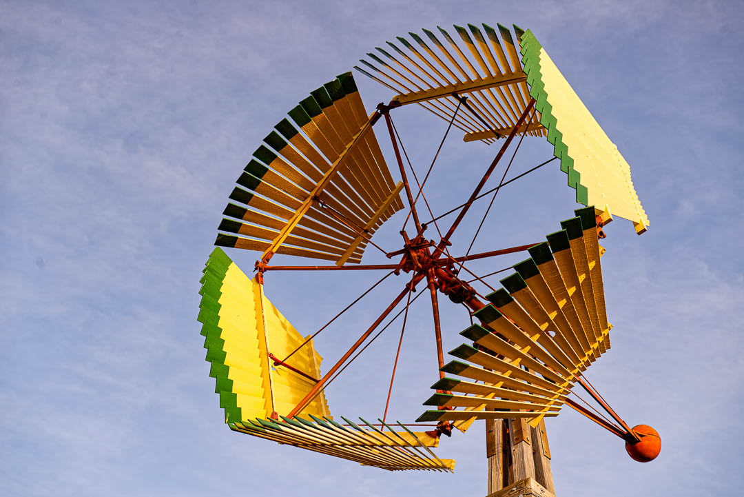 Windmills can be seen all over the American midwest and west. The Shattuck Windmill Museum in Shattuck, Oklahoma, has collected 37 different windmills and some related equipment. They range in diameter from five to eighteen feet. The windmills are all in working order and have served on a farm or ranch. This American-style windmill was invented in 1854, and it played an essential role in the settlement of the American high plains. The electrically powered pump gradually replaced many of the windmills beginning in the 1930s, but windmills saw a resurgence in the 1970s when electricity prices increased sharply. Many functioning windmills can be seen today watering gardens and providing a favorite meeting place for cows. I took these photographs in 2021.